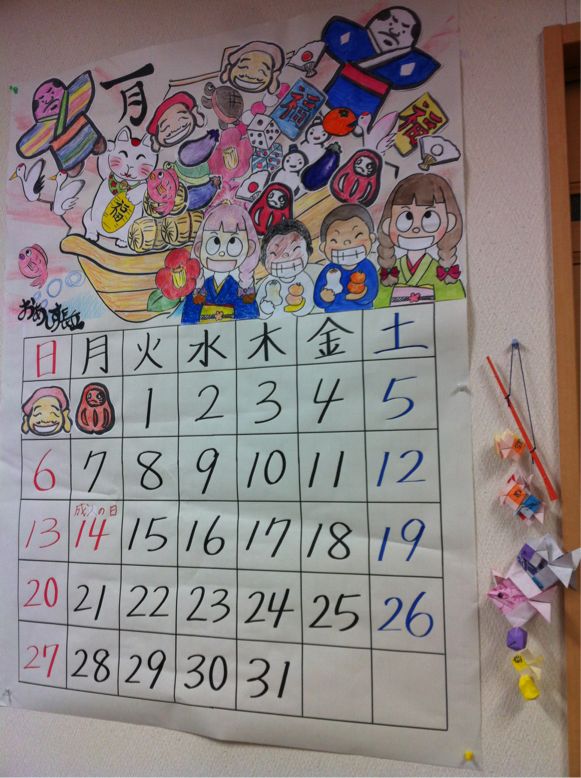 今月も、みなさんの絵でおおおきなカレンダーに♪