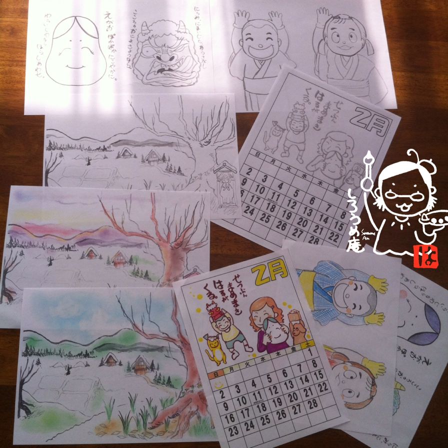 絵遊びぬりえ、節分の絵でご用意いたしました。
