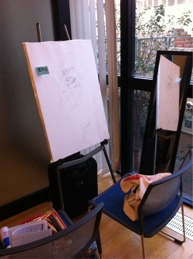 私がその場で製作してます。これは、苦手な苦手な“自画像”特訓中♩