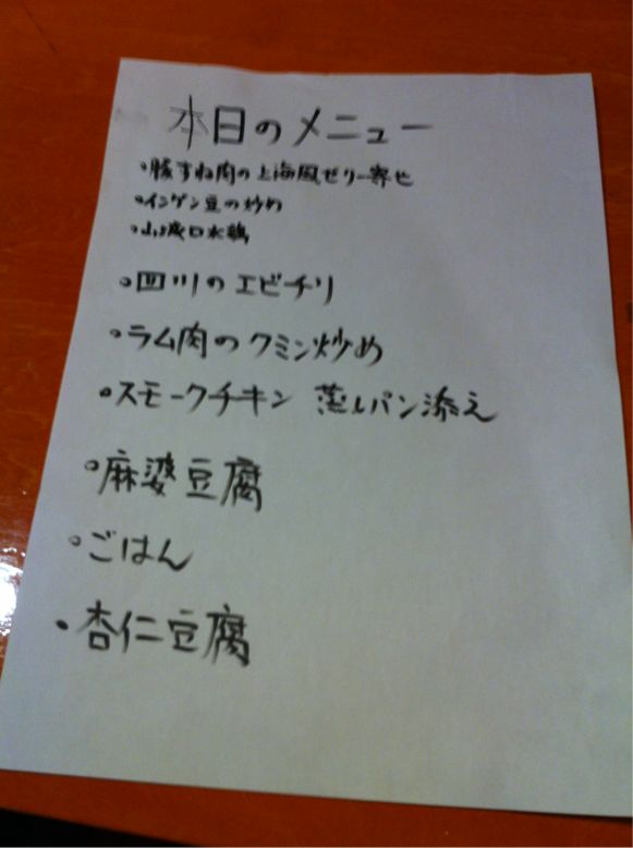 あ、この送別会のための、お品書きこちら。